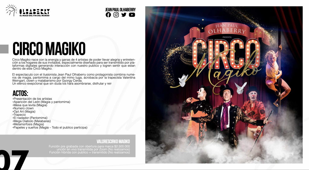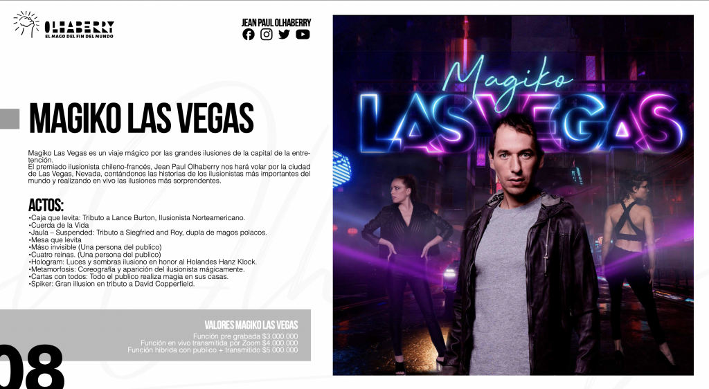 · En su carrera artística ha creado 8 obras/espectáculos teatrales de magia, llegando a más de 100 mil espectadores.